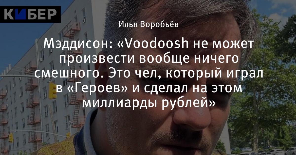 Мэддисон: «Voodoosh не может произвести вообще ничего смешного. Это чел, который играл в «Героев» и сделал на этом миллиарды рублей»