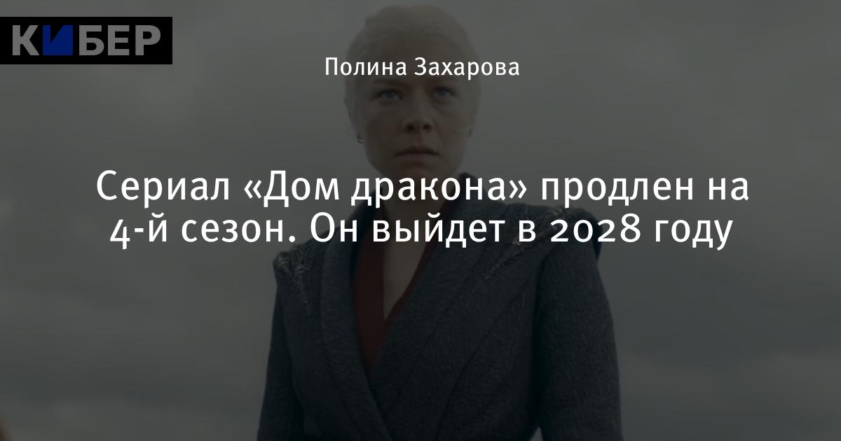 HBO объявила во время презентации в Нью-Йорке, что шоу «Дом дракона» продлено на 4-й сезон, премьера которого ожидается в 2028 году. Примечательно, что третий сезон выйдет только в 2026 году.