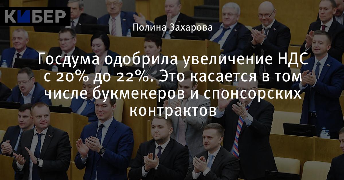 Госдума одобрила увеличение НДС с 20% до 22%. Это касается в том числе букмекеров и спонсорских контрактов