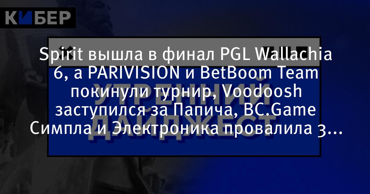 Spirit вышла в финал PGL Wallachia 6, а PARIVISION и BetBoom Team покинули турнир, Voodoosh заступился за Папича, BC.Game Симпла и Электроника провалила 3 турнира за 5 дней и другие новости утра
