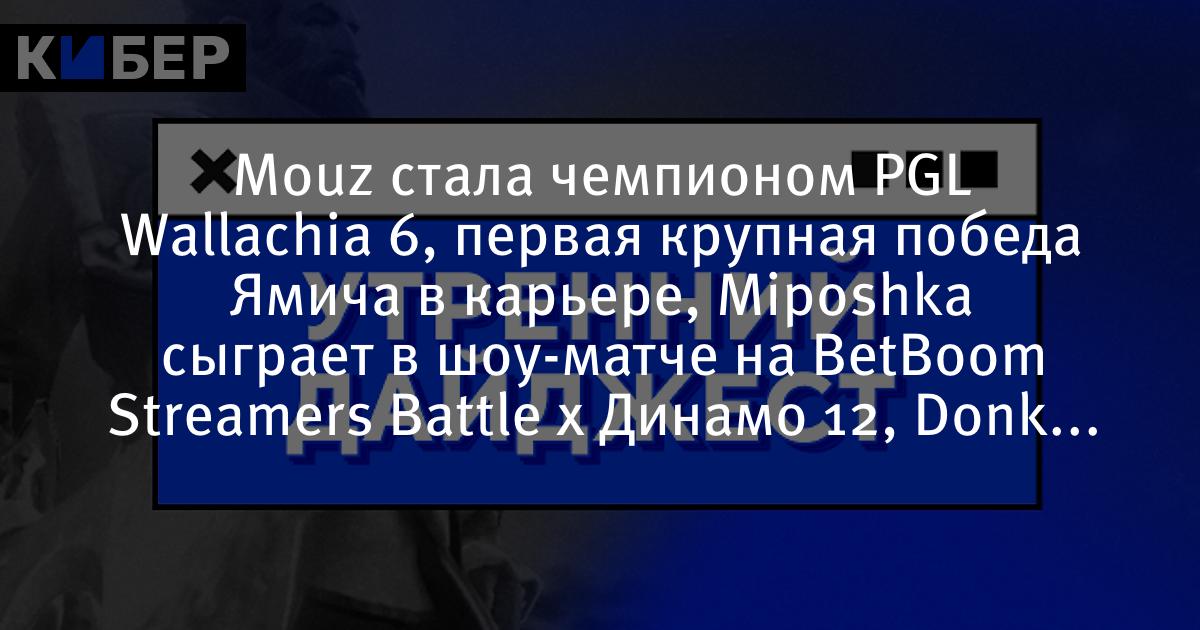 Mouz стала чемпионом PGL Wallachia 6, первая крупная победа Ямича в карьере, Miposhka сыграет в шоу-матче на BetBoom Streamers Battle x Динамо 12, Donk оценил свою форму и другие новости утра