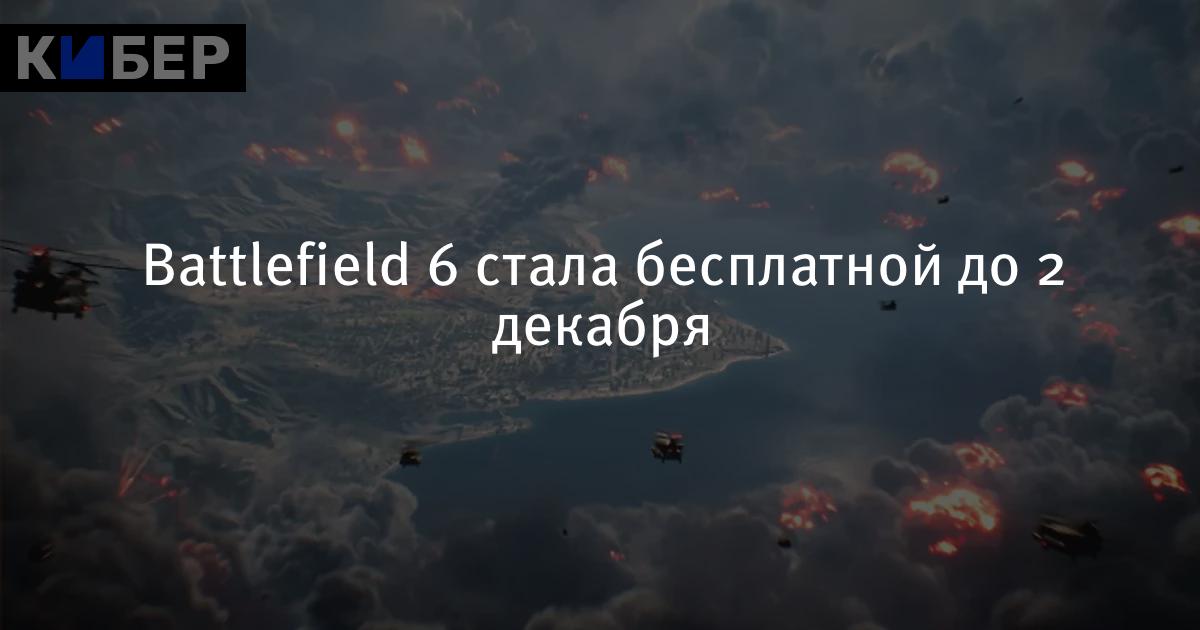 Бесплатная неделя Battlefield 6 продлится с 25 ноября по 2 декабря. Игра доступна бесплатно для ПК, PlayStation 5 и Xbox Series X/S.