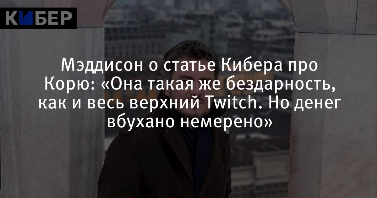 Мэддисон о статье Кибера про Корю: «Она такая же бездарность, как и весь верхний Twitch. Но денег вбухано немерено»