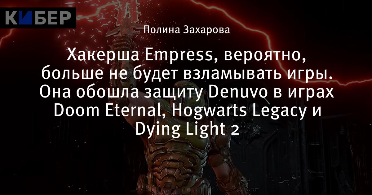Хакерша Empress, вероятно, больше не будет взламывать игры. Она обошла защиту Denuvo в играх Doom Eternal, Hogwarts Legacy и Dying Light 2