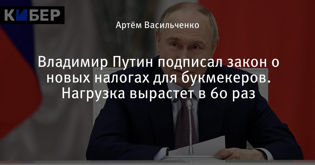 Владимир Путин подписал закон о новых налогах для букмекеров. Нагрузка вырастет в 60 раз