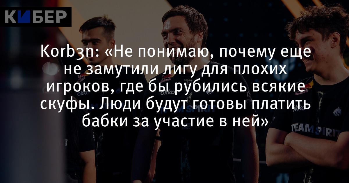 Korb3n: «Не понимаю, почему еще не замутили лигу для плохих игроков, где бы рубились всякие скуфы. Люди будут готовы платить бабки за участие в ней»