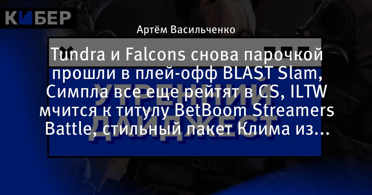 Tundra и Falcons снова парочкой прошли в плей-офф BLAST Slam, Симпла все еще рейтят в CS, ILTW мчится к титулу BetBoom Streamers Battle, стильный пакет Клима из MIBR и другие новости утра