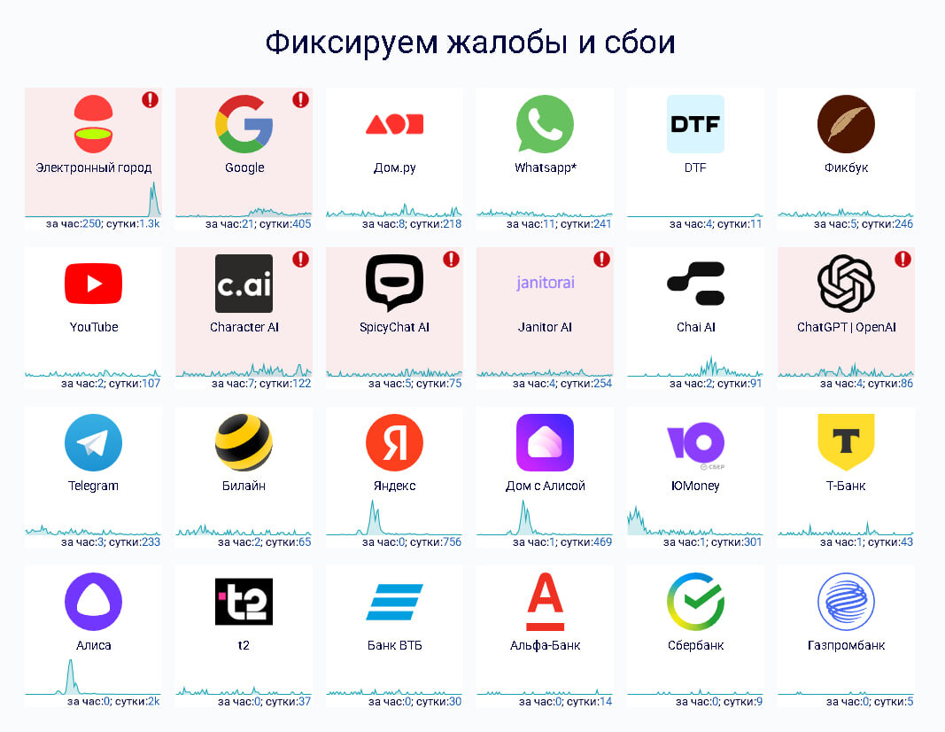 - Москва (168 жалоб за последние 3 часа)