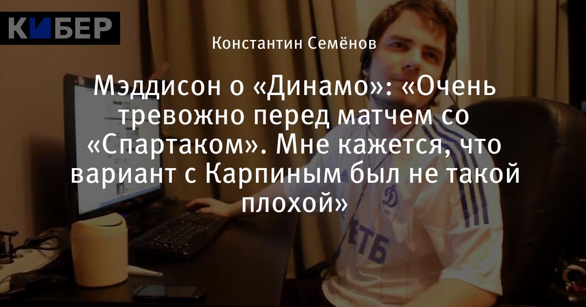 Мэддисон о «Динамо»: «Очень тревожно перед матчем со «Спартаком». Мне кажется, что вариант с Карпиным был не такой плохой»