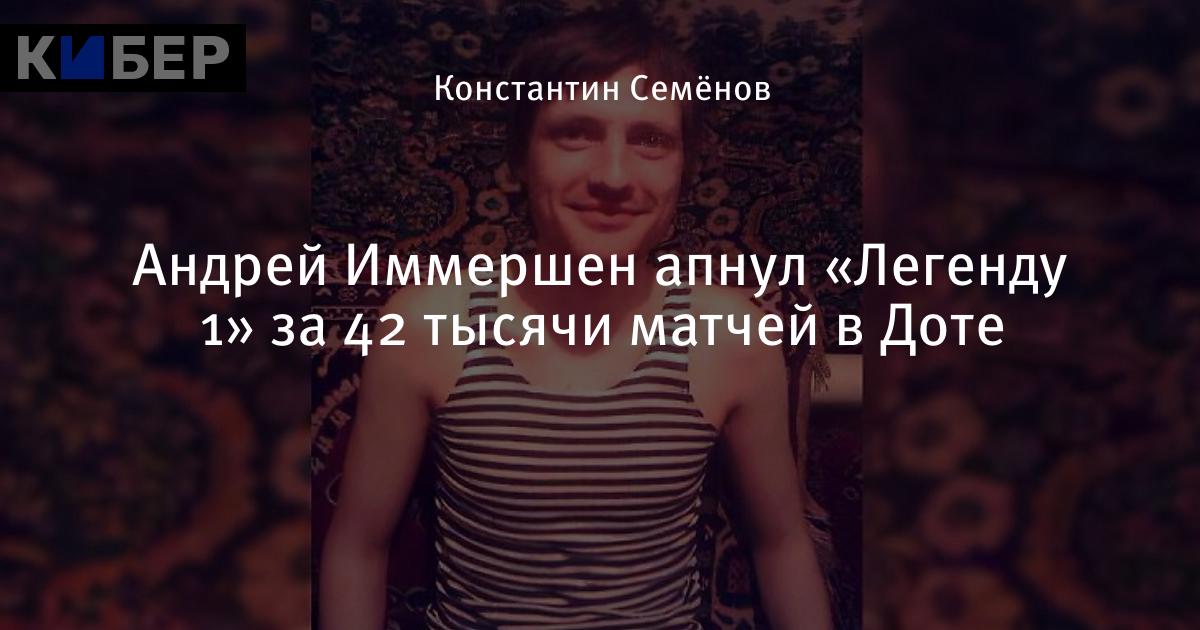 За почти 42 тысячи матчей легенда Доты Андрей Иммершен впервые добился звания «Легенда 1».