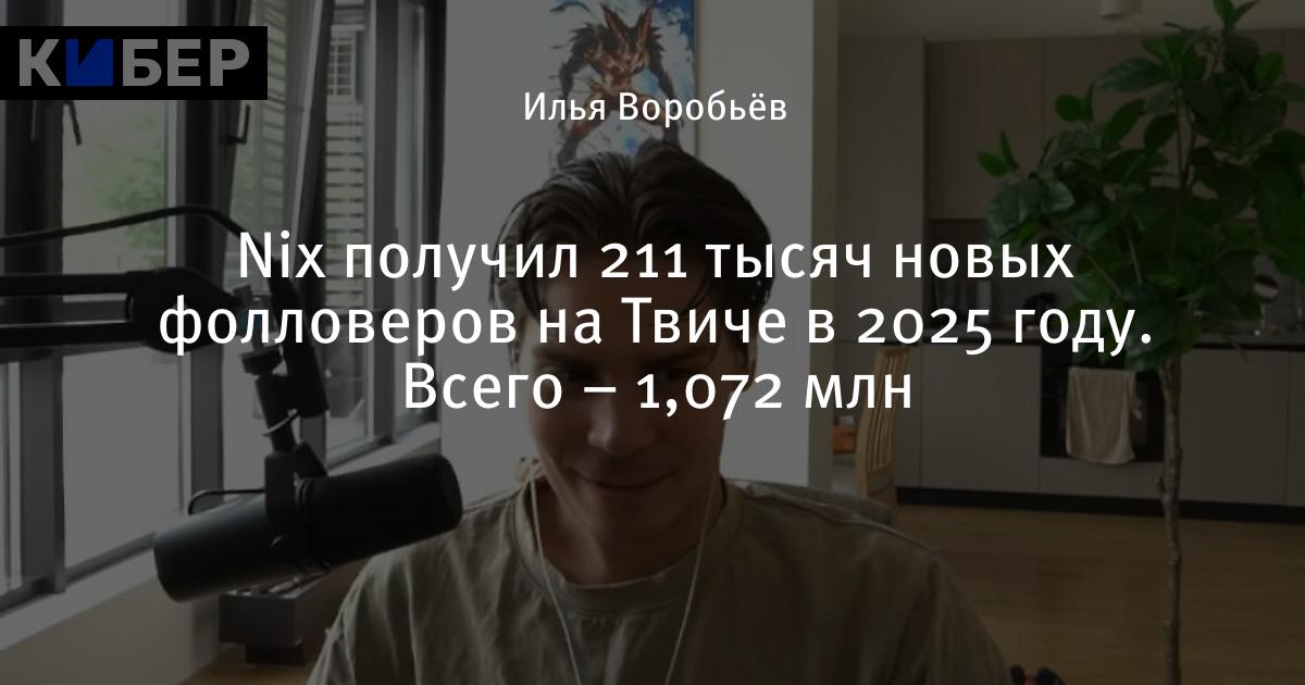 Nix получил 211 тысяч новых фолловеров на Твиче в 2025 году. Всего – 1,072 млн