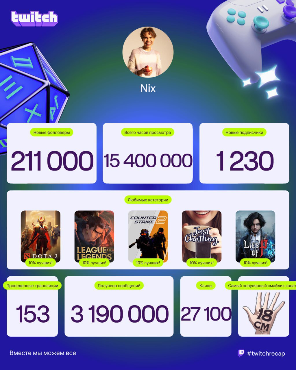 Nix показал итоги года на Твиче за 2025 год.