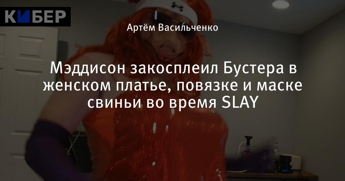 Стрим запустил собственную трансляцию с обсуждением премии SLAY. Для этого Илья «Maddyson» Давыдов сделал косплей на Вячеслава «Buster» Леонтьева, надев фирменную белую повязку, женское платье и маску свиньи.