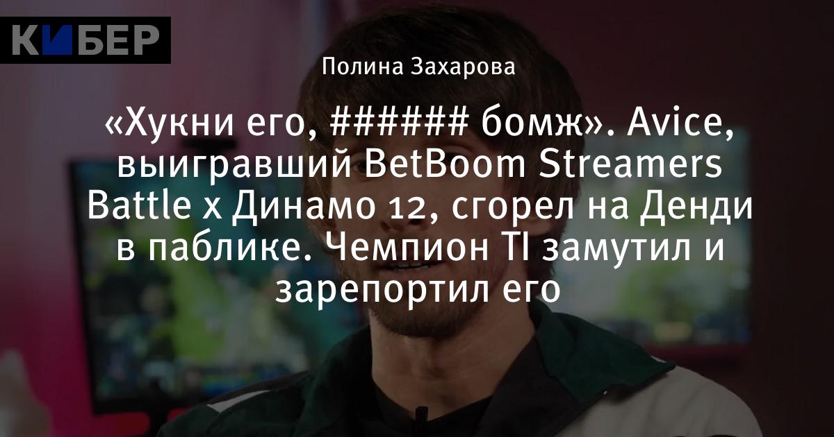 «Хукни его, ###### бомж». Avice, выигравший BetBoom Streamers Battle х Динамо 12, сгорел на Денди в паблике. Чемпион TI замутил и зарепортил его