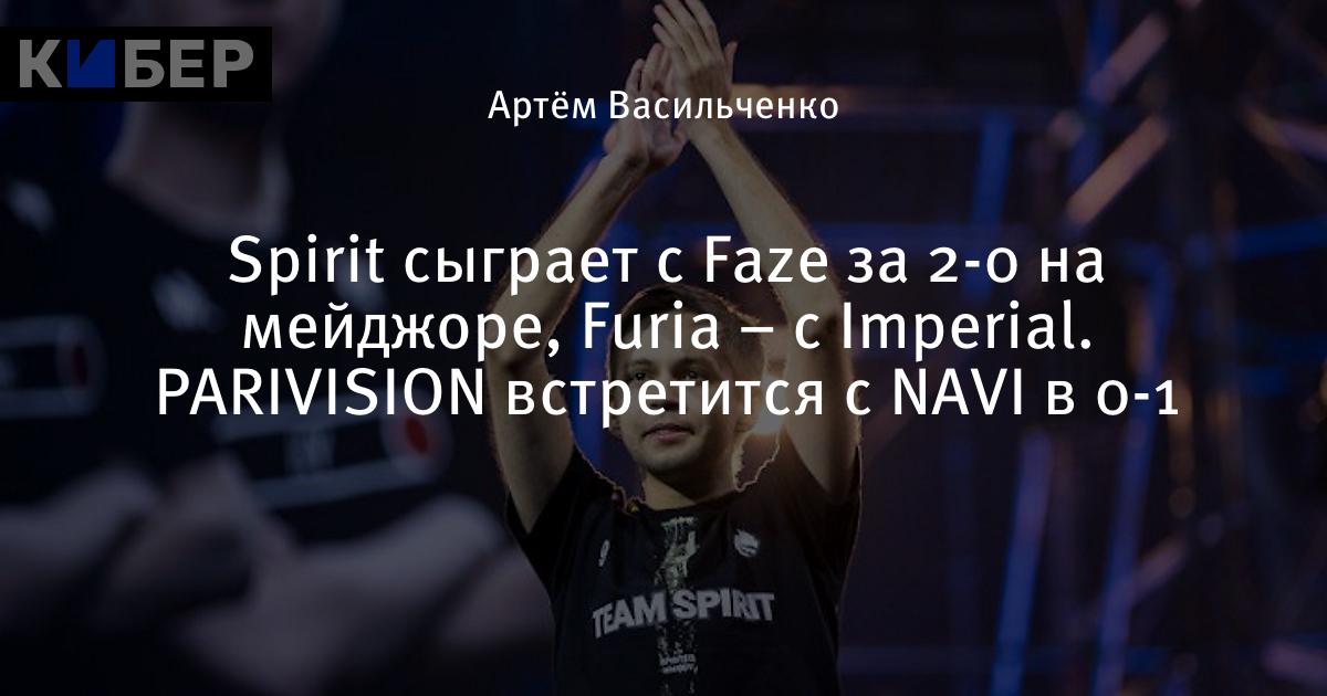 Spirit сыграет с Faze за 2-0 на мейджоре, Furia – с Imperial. PARIVISION встретится с NAVI в 0-1