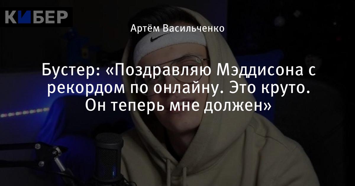 Вячеслав «Buster» Леонтьев поздравил Илью «Maddyson» Давыдова с рекордом по онлайну.