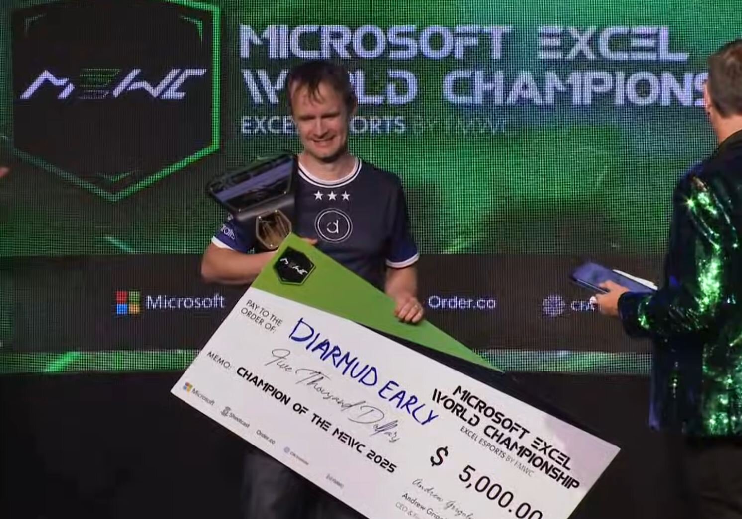 Ирландец выиграл ЧМ по Excel с призовым фондом 61,5 тысячи долларов. Имя игрока неправильно написали на чемпионском сертификате
