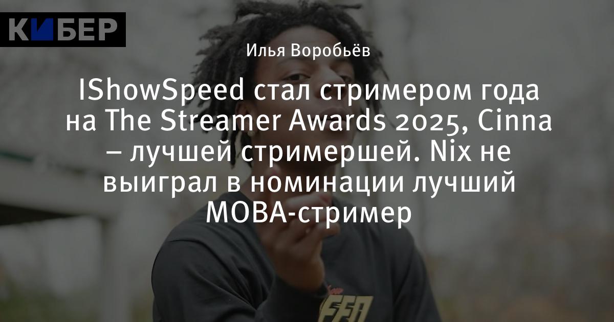IShowSpeed стал стримером года на The Streamer Awards 2025, Cinna – лучшей стримершей. Nix не выиграл в номинации лучший MOBA-стример