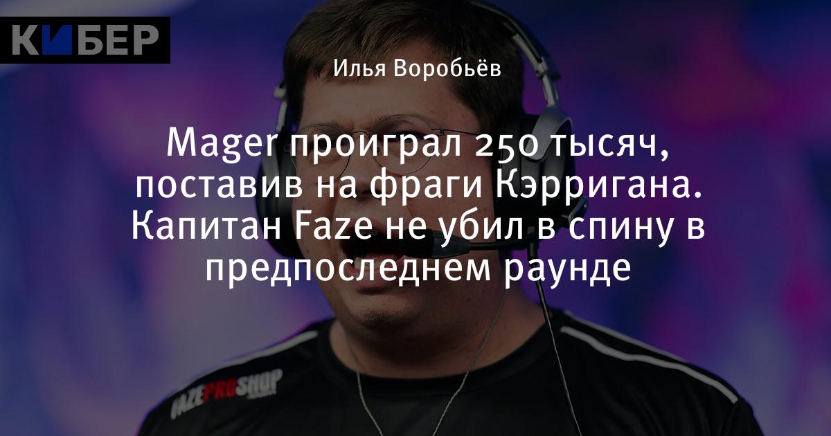 Mager проиграл 250 тысяч, поставив на фраги Кэрригана. Капитан Faze не убил в спину в предпоследнем раунде