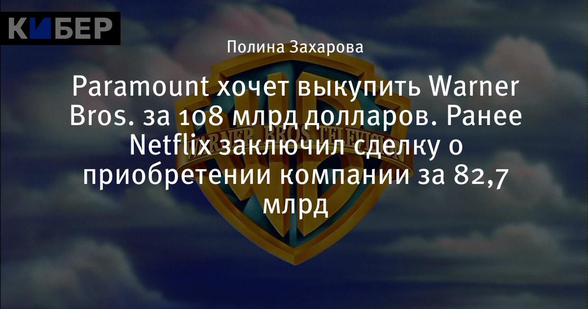 Paramount хочет выкупить Warner Bros. за 108 млрд долларов. Ранее Netflix заключил сделку о приобретении компании за 82,7 млрд