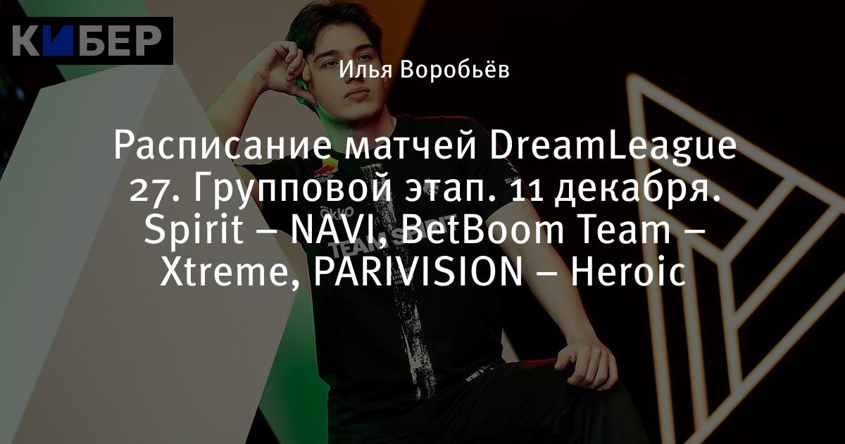 Расписание матчей DreamLeague 27. Групповой этап. 10 декабря. Spirit – 1win, PARIVISION – GamerLegion, Aurora – NAVI, VP – Team Yandex