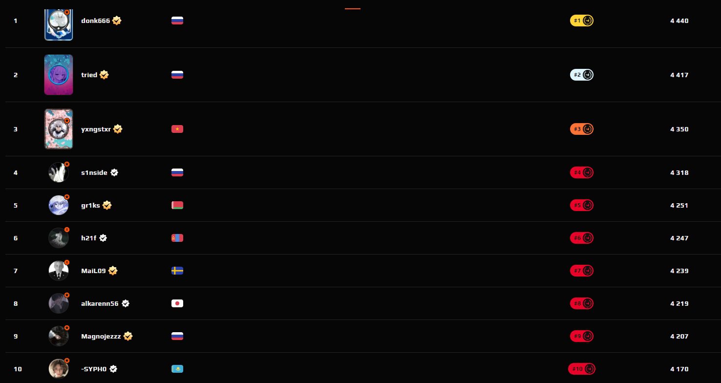 Данил «Donk» Крышковец возглавил европейский ладдер Faceit – 4440 эло. Второе место занимает Глеб «Tried» Холмогоров с 4417 это, замыкает топ-3 Саймон «Yxngstxr» Бойе – 4350 эло.