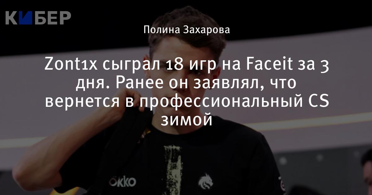 Zont1x сыграл 18 игр на Faceit за 3 дня. Ранее он заявлял, что вернется в профессиональный CS зимой