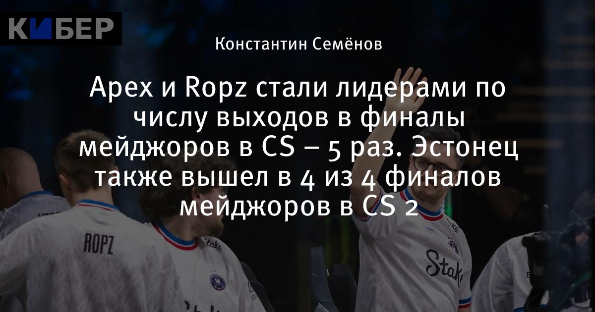 Apex и Ropz стали лидерами по числу выходов в финалы мейджоров в CS – 5 раз. Эстонец также вышел в 4 из 4 финалов мейджоров в CS 2