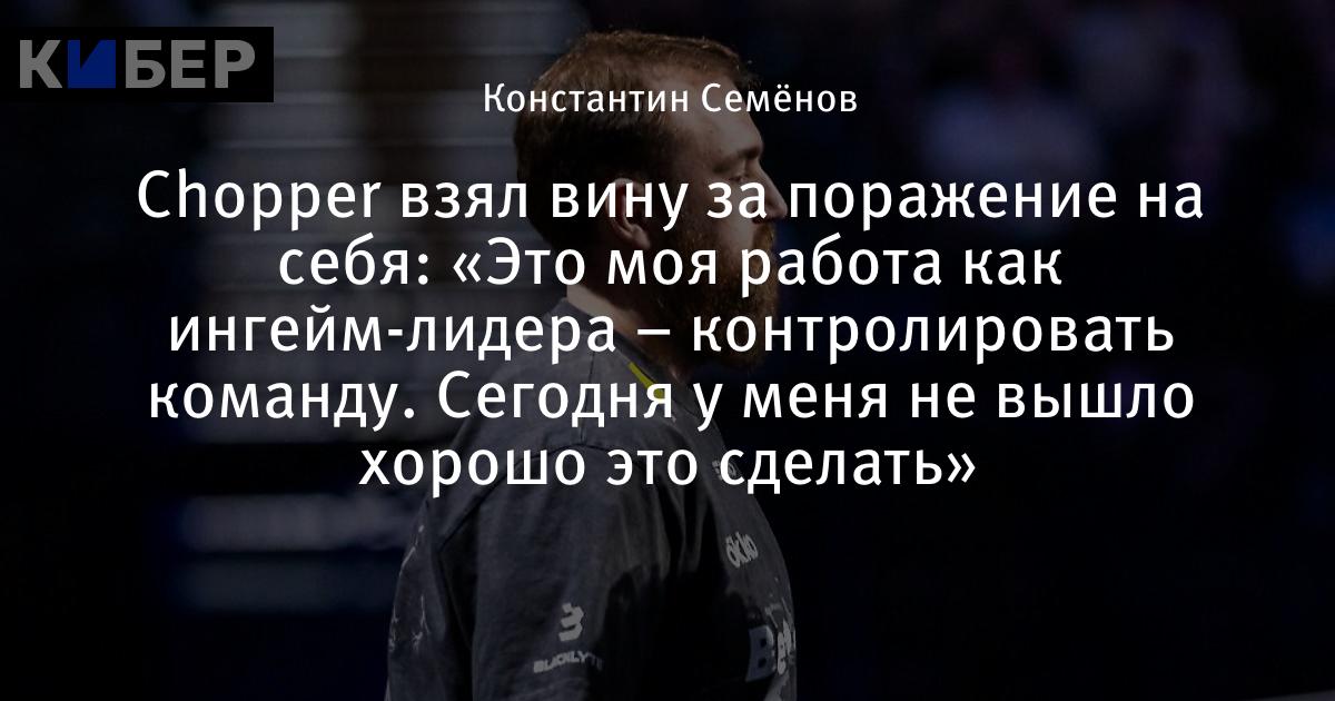 Chopper взял вину за поражение на себя: «Это моя работа как ингейм-лидера – контролировать команду. Сегодня у меня не вышло хорошо это сделать»