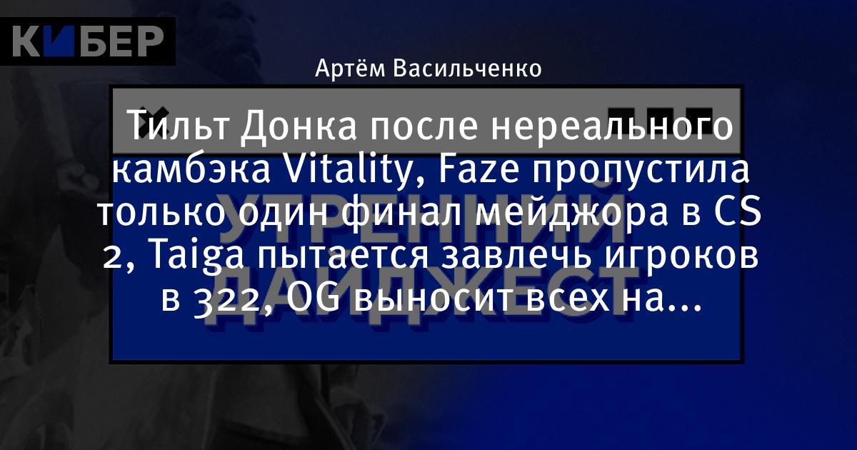 Тильт Донка после нереального камбэка Vitality, Faze пропустила только один финал мейджора в CS 2, Taiga пытается завлечь игроков в 322, OG выносит всех на DreamLeague 27 и другие новости утра