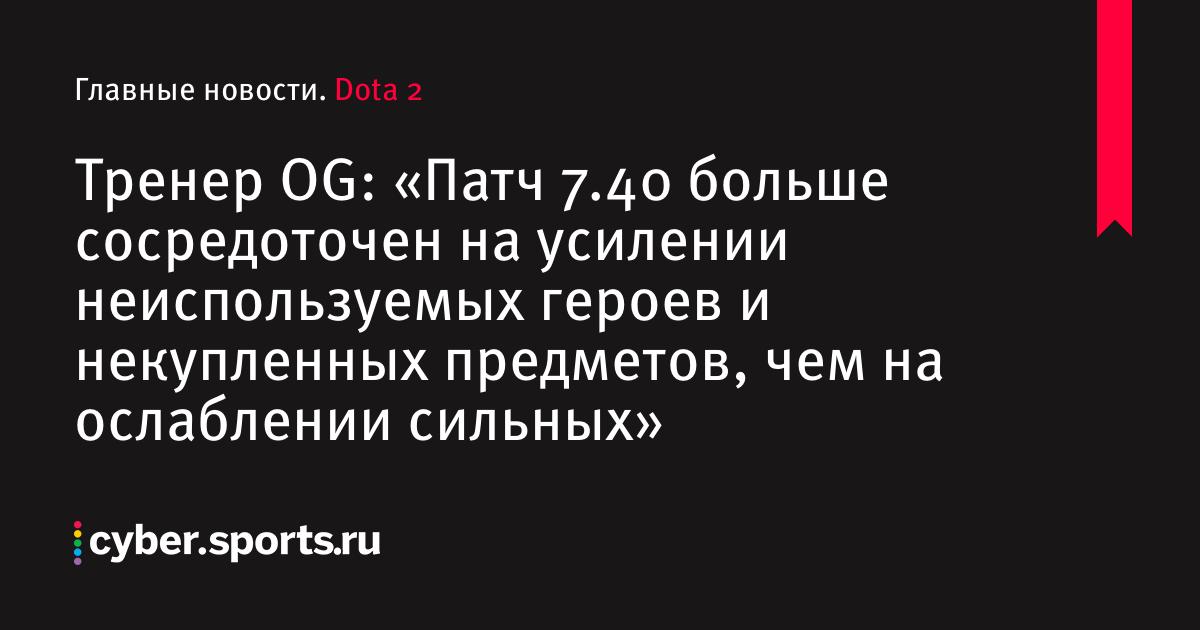 Тренер OG: «Патч 7.40 больше сосредоточен на усилении неиспользуемых героев и некупленных предметов, чем на ослаблении сильных»