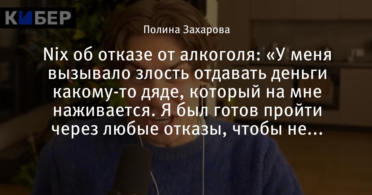 Nix об отказе от алкоголя: «У меня вызывало злость отдавать деньги какому-то дяде, который на мне наживается. Я был готов пройти через любые отказы, чтобы не быть крысой в колесе»
