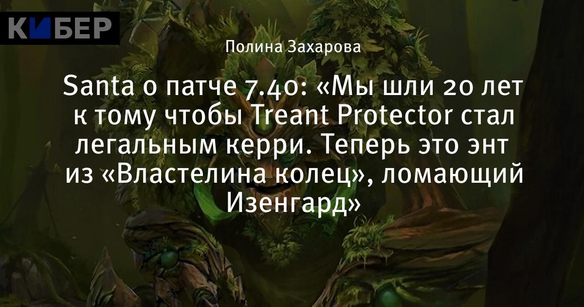 Santa о патче 7.40: «Мы шли 20 лет к тому чтобы Treant Protector стал легальным керри. Теперь это энт из «Властелина колец», ломающий Изенгард»