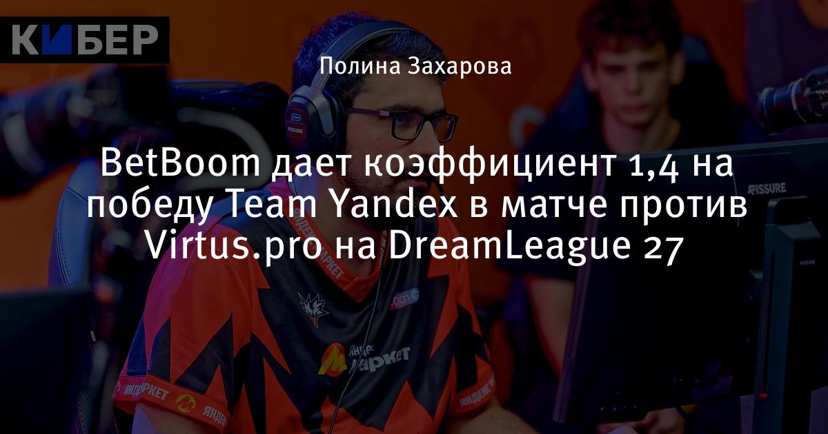 BetBoom дает коэффициент 1,4 на победу Team Yandex в матче против Virtus.pro на DreamLeague 27