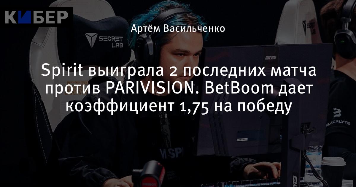 Spirit выиграла 2 последних матча против PARIVISION. BetBoom дает коэффициент 1,75 на победу