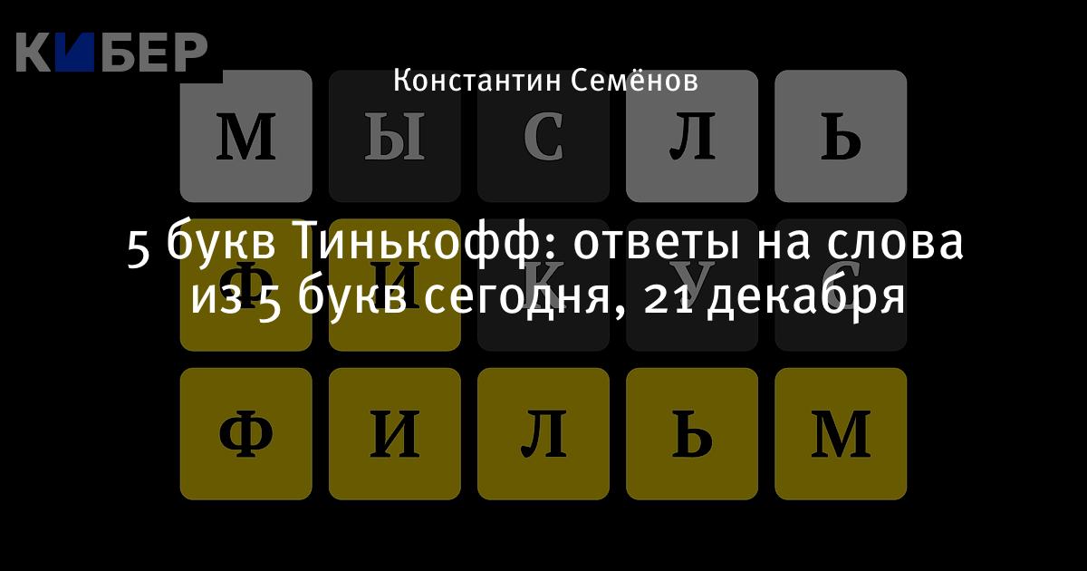 5 букв Тинькофф: ответы на слова из 5 букв сегодня, 21 декабря