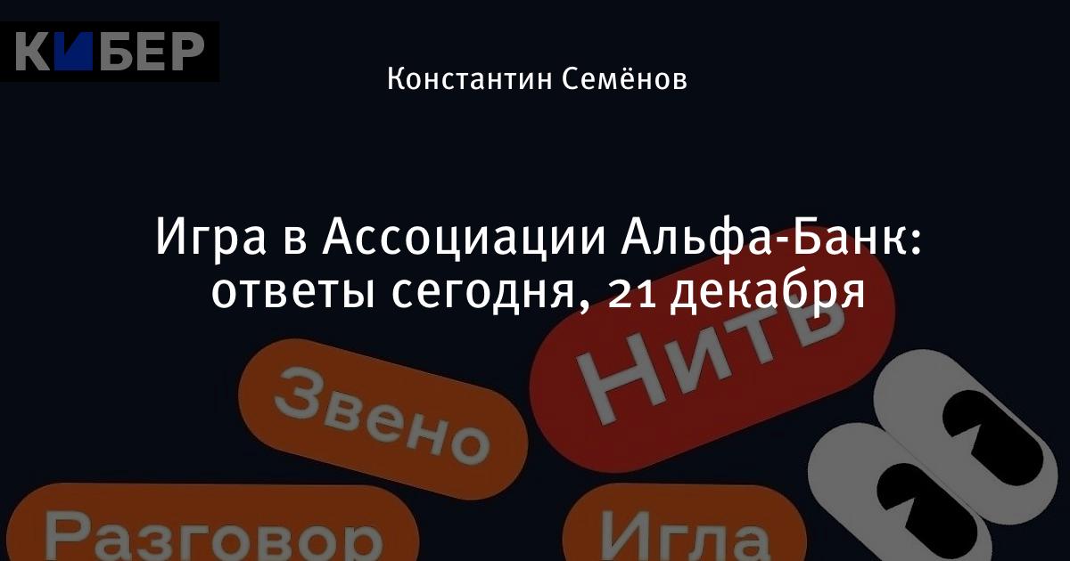 Ответы на ассоциации Альфа-Банк 21 декабря: