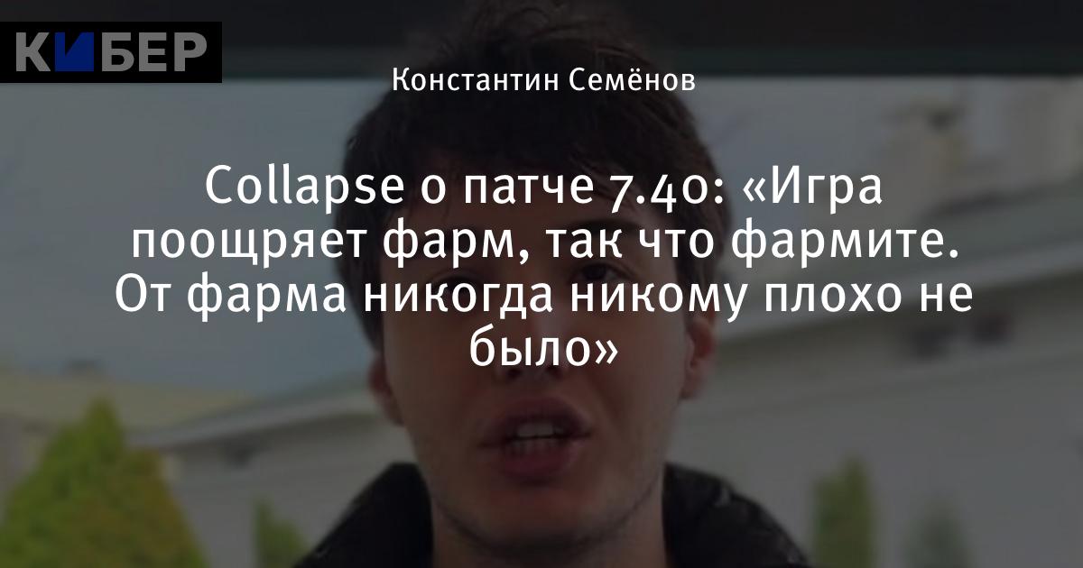 Collapse о патче 7.40: «Игра поощряет фарм, так что фармите. От фарма никогда никому плохо не было»
