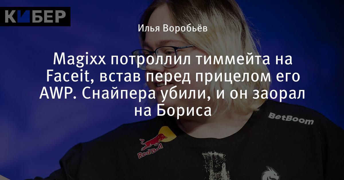 Magixx потроллил тиммейта на Faceit, встав перед прицелом его AWP. Cнайпера убили, и он заорал на Бориса