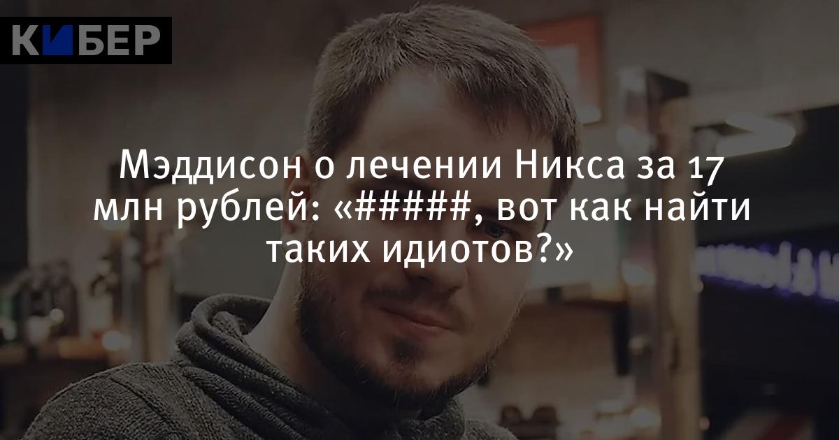 Мэддисон о лечении Никса за 17 млн рублей: «#####, вот как найти таких идиотов?»