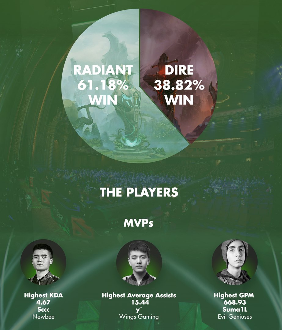 Китайские игроки, не смотря на слабое выступление, сумели показать неплохие индивидуальные показатели. Лучший КДА – у игрока NewBee Сон «Sccc» Чуна, а Чжан «y’» Йипин из Wings Gaming стал лучшим по среднему количеству ассистов.