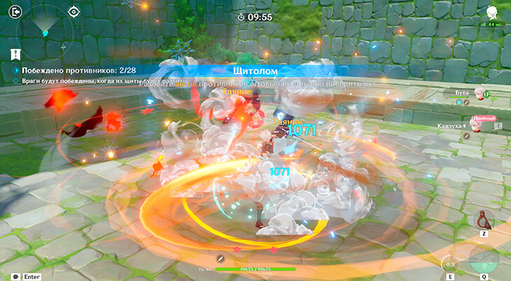 Пробным персонажем станет Кадзуха, а врагами – различные маги Бездны. Вам нужно с помощью подручных средств (камней с водой, факелов) быстро снять с них щиты, и они сразу же умрут без щита. Во время испытания ульта и элементальный навык откатываются очень быстро, вы можете стягивать несколько магов Е-шкой и использовать ульту.
