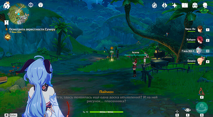 Квест начнется, когда Паймон предложит осмотреть окрестности Сумеру. Отправляйтесь к месту неподалеку от телепорта.