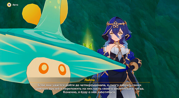После удачного завершения этапа вы познакомитесь с Лайлой – будущей героиней, которую можно будет получить в баннерах второй части патча 3.2. Лайла четырехзвездочная Крио мечница. У нее проблемы со здоровьем, из-за которых она жутко устает и может уснуть прямо на ходу. Но она хочет поучаствовать в соревновании, чтобы забрать прирученных плесенников в качестве помощников.