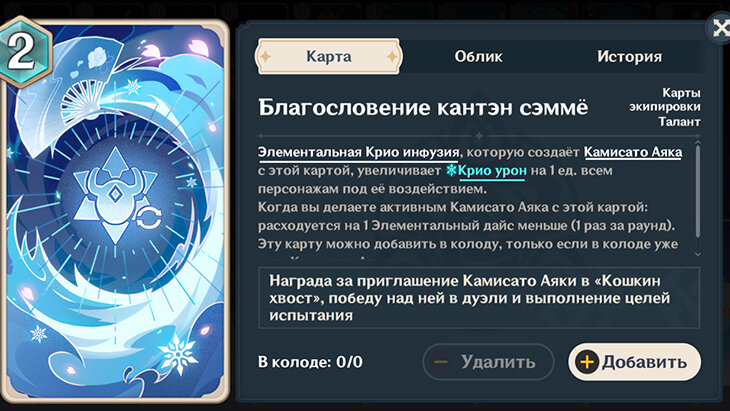 - Пассивный навык: когда вы выбираете Аяку активным персонажем, она получает Крио инфузию.