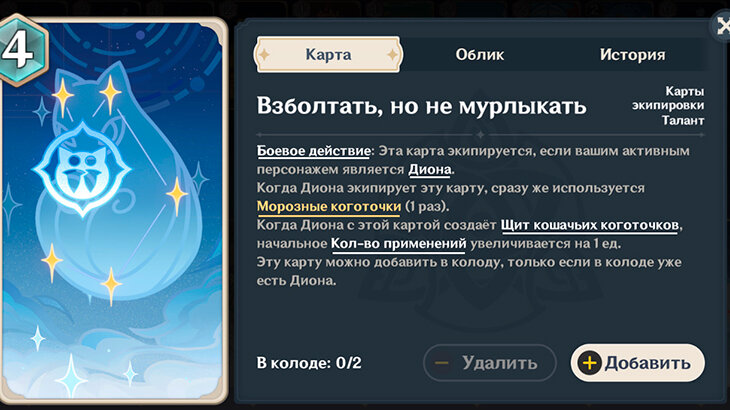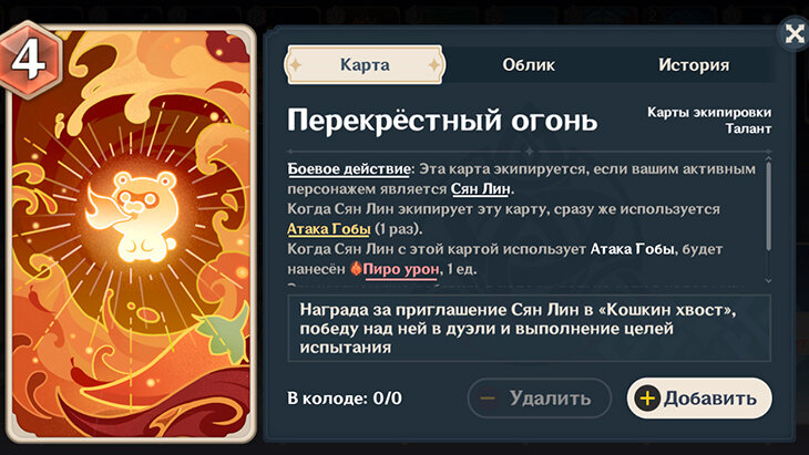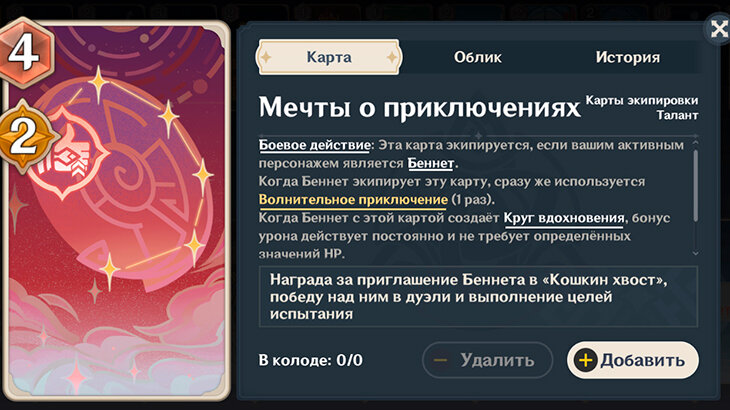 На обучении вы получите свои первые карты персонажей – это Дилюк, Кэйа, Сахароза и Фишль. Из них может получиться неплохая стартовая колода, которой можно пройти первые этапы – игры с жителями Мондштадта. Все благодаря отличной способности Сахарозы, а также элементальным реакциям Пиро Дилюка. Но о колодах позже.