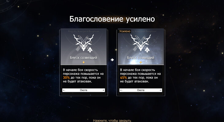 Мы выбрали получение благословения ⭐ или ⭐⭐. И с ходу не получили ничего связанного с Охотой.