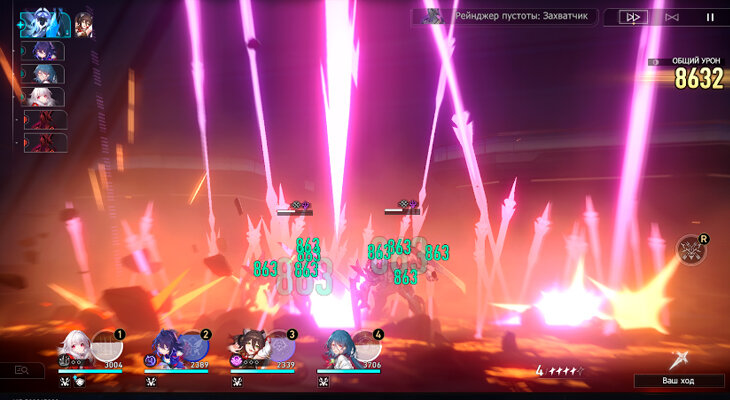 - Яньцин, Сервал, Аста и Наташа (путь Памяти через Заморозку). Янь тут и основной дамагер и главный катализатор Заморозки, Сервал же второстепенный ДД и оружие против боссов. Аста дает бафф на скорость и помогает справиться с одним из боссов, а Наташа просто хилит, как не в себя.
