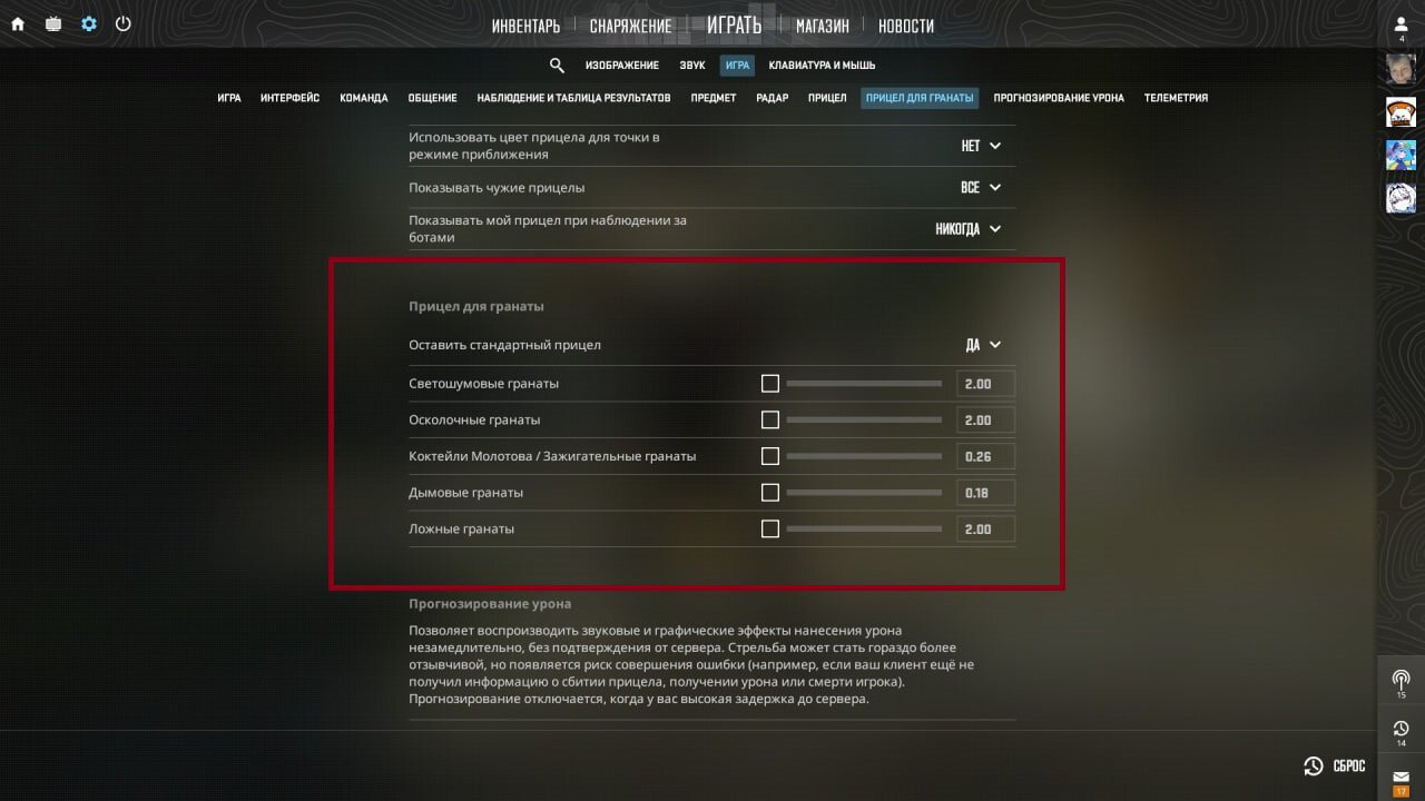 Чтобы поставить такой прицел, зайдите в настройки: Игра – Прицел для гранаты.