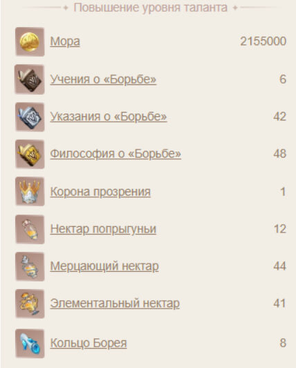Прокачка талантов (обычная атака 1 уровня, элементальный навык 8 уровня, взрыв стихии 10 уровня):